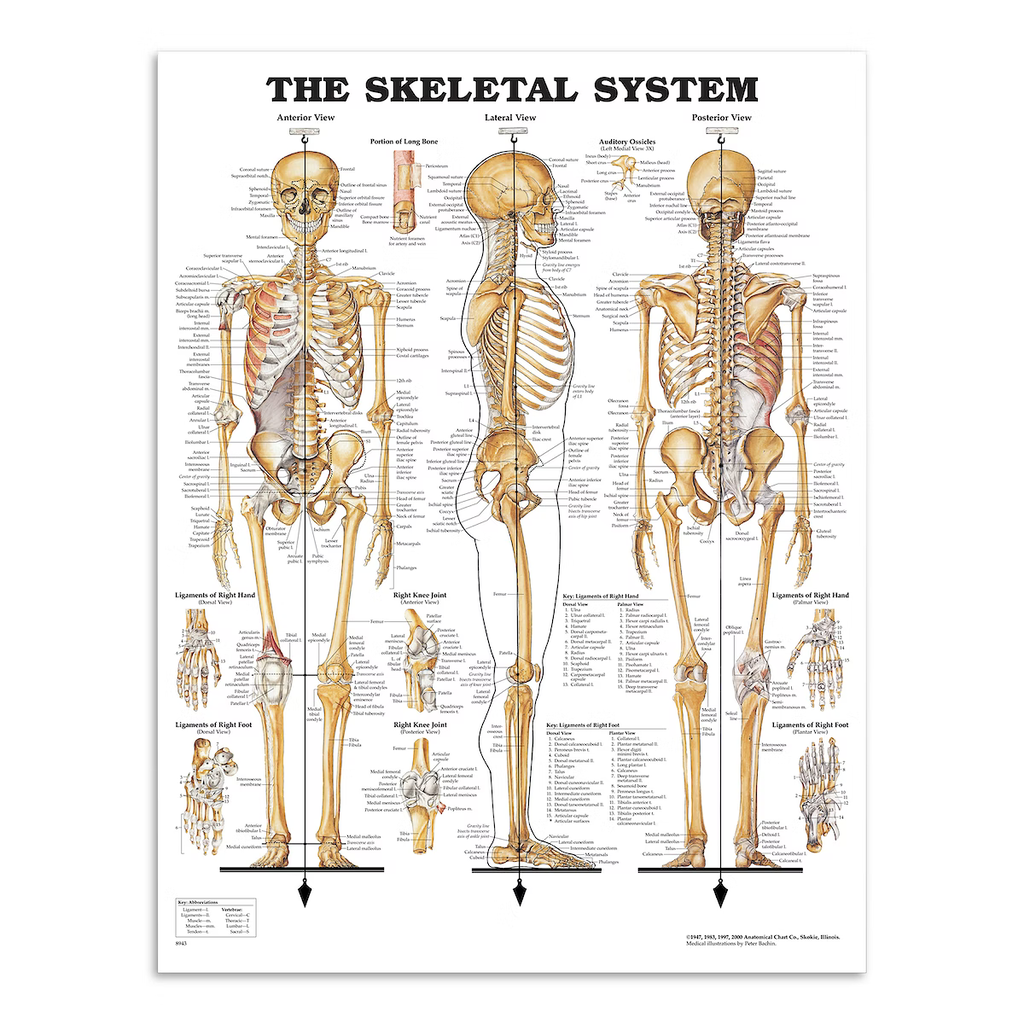 Objevte podrobný pohled na kostru těla s naším plakátem s motivem kosterního systému. Tento plakát, který v roce 1947 vytvořil významný umělec Peter Bachin pro společnost Anatomical Chart Company, obstál ve zkoušce času jako jeden z nejvyhledávanějších a nejprodávanějších anatomických plakátů.