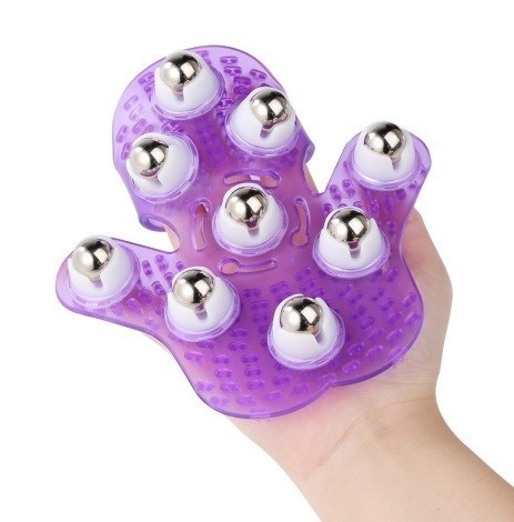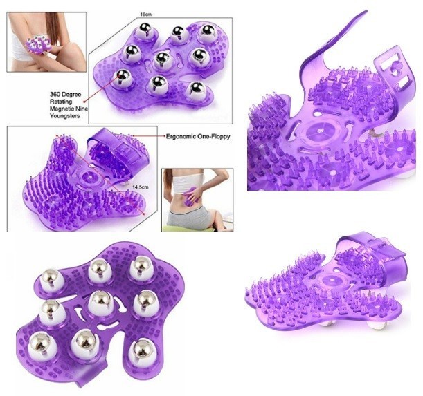 Oblíbená masážní rukavice se 2 stranami, jedna strana masážní rukavice je s 9 ocelovými kuličkami, které se otáčejí o 360 stupňů. Pokud ji otočíte, můžete s ní drhnout nebo běhat po spoušťových bodech, dobře padne díky přezce, kterou si můžete přizpůsobit ruce. Perfektní masážní doplněk