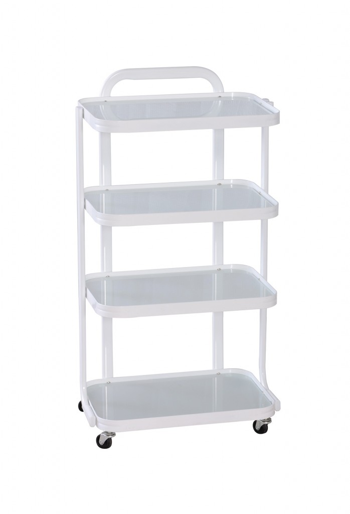 Vybaven 4 průhlednými skleněnými policemi.